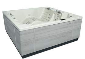 The A6 is a premium space-saving hot tub model with all the features you could ask for. The small exterior footprint is perfect for the tight spaces that are a part of an urban lifestyle or modern backyard design, while maintaining ample room on the inside. The open seating plan allows you to stretch out and relax while still maintaining a perfect fit for smaller patios, balconies and decks. Four comfortable premium corner seats each offer a unique JetPak massage allowing you to design your perfect hot tub experience.